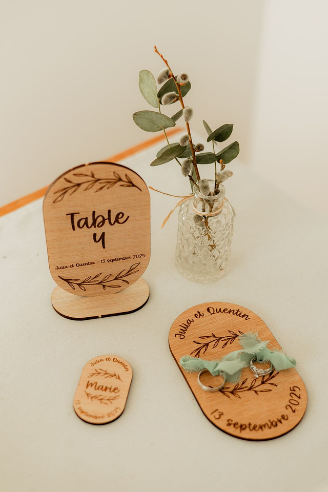 Apportez une note naturelle et poétique à votre cérémonie avec ce porte alliances en bois, issu de la Collection Nature Ovale. Sa forme tout en douceur, ornée de feuillages délicats, en fait une pièce à la fois élégante et intemporelle. Les rubans permettent de maintenir vos alliances en toute sécurité tout en ajoutant une subtile touche de couleur à votre mise en scène.
